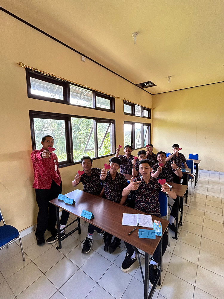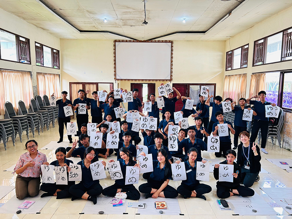 今日は私が6か月お世話になった派遣先校をご紹介したいと思います。私が派遣されているのはバリ州の中部、バンリ県のバンリ第2国立専門高等学校(SMKN2)です。全校生徒は1,000名超で、担当する日本語クラスは11年生(高校2年生)、約300人の生徒に授業のアシスタントを行っています。この高校は観光やホテル、レストラン、調理等の授業が充実しているのが特徴です。卒業生の多くはホテル、レストラン、旅行関係等幅広いサービス業に従事します。オーストラリア等海外で大型船のクルーになりたいという子たちも多くいます。もちろん、日本語クラスの中には日本で働きたい!という子も。日本語に興味ある子もない子も、縁があってこのタイミングで出会えた可愛い生徒たちなので、毎回の授業や文化体験等、何か少しでも日本に興味を持ってもらえる企画作りに奮闘しています!