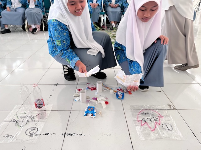 次は、「リサイクルとごみの分別」についてです。日本の街の様子を写真で見せ、その後日本のごみのリサイクルと分別方法について紹介しました。生徒に身近な3R(リデュース・リユース・リサイクル)のアイデアを考えてもらい、ごみの分別体験もしてもらいました。