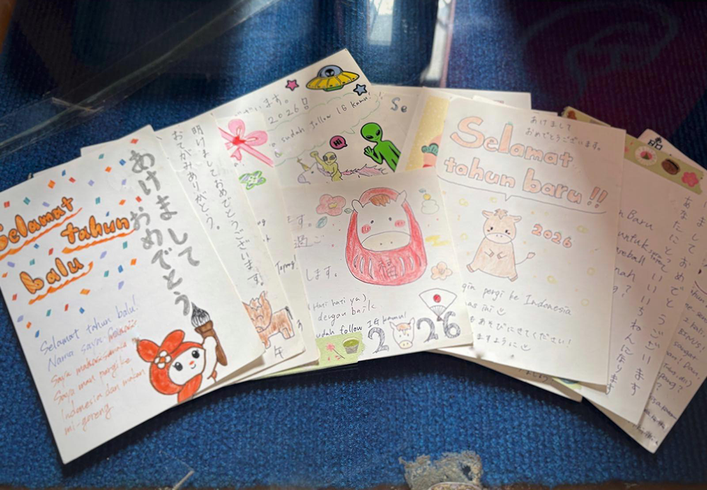 生徒たちにもその感覚を味わってほしい。「いつか日本に会いに行きたい」と思える友達を作ってほしい。そんな思いで、文化紹介も交えて日本の学生との年賀状交換を企画しました。