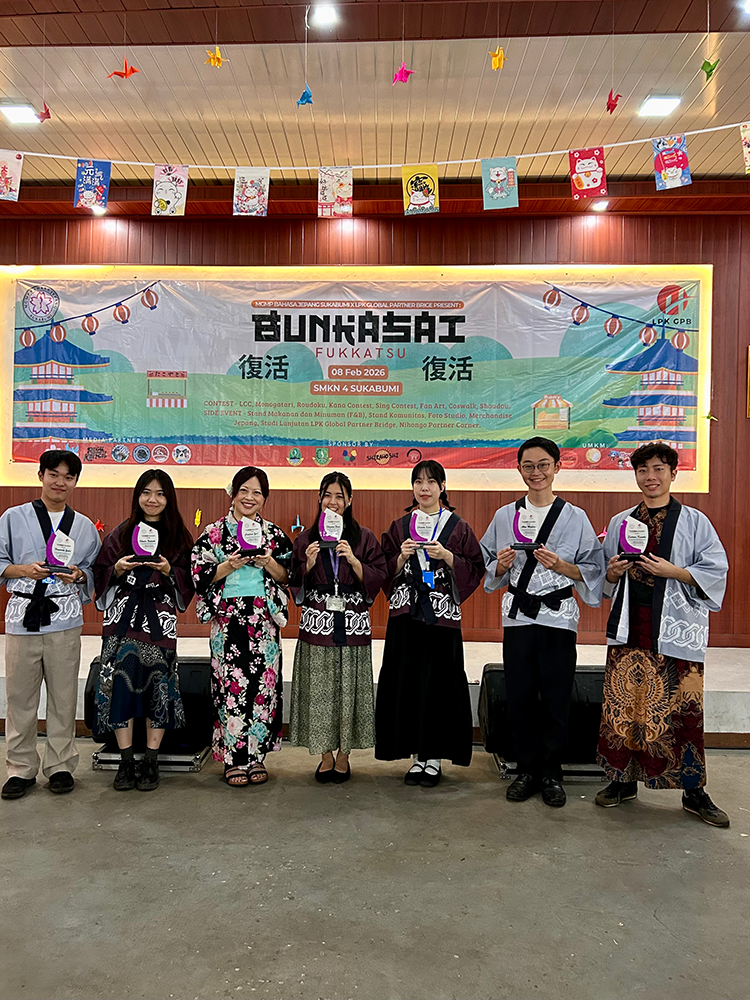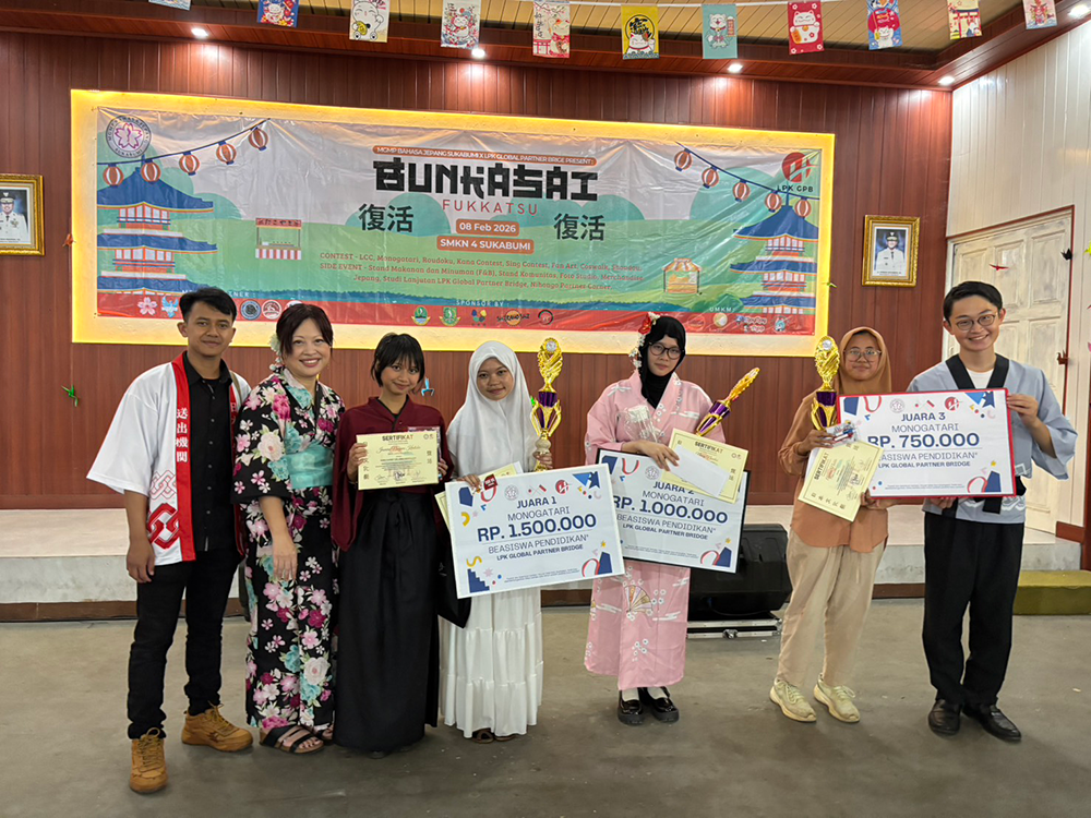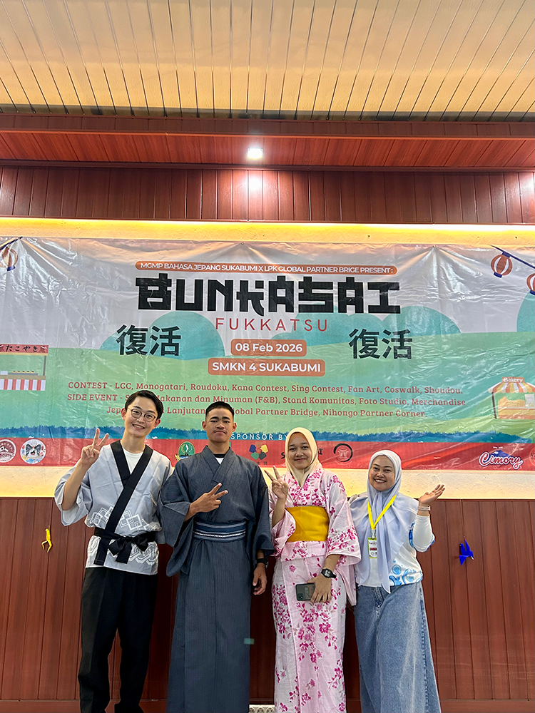 2月8日、スカブミ市の高校で日本語・日本文化をテーマにした文化祭が開催されました。その名も「スカブミ文化祭 復活」。MGMP(日本語教師会)が企画し、10年ぶりに実現したイベントです。会場では、物語、ひらがな・カタカナのテスト、朗読、日本クイズ、書道、ファンアート、歌、コスプレといった多彩なコンテストが行われ、出店やパフォーマンスもあり、大変なにぎわいでした。私も企画段階から打ち合わせや前日準備に参加しました。