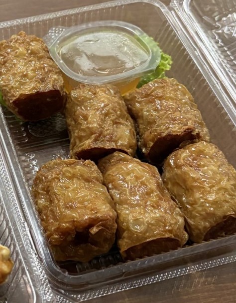 ホイ・ジョー・プーは、蟹のむき身を豚ひき肉や調味料と混ぜて餡を作り、それを平湯葉で包んで蒸し、さらに揚げた料理です。蟹の身がたっぷり入ったジューシーな肉餡と、パリパリの湯葉の食感の組み合わせが特徴です。甘いたれにつけていただきます。