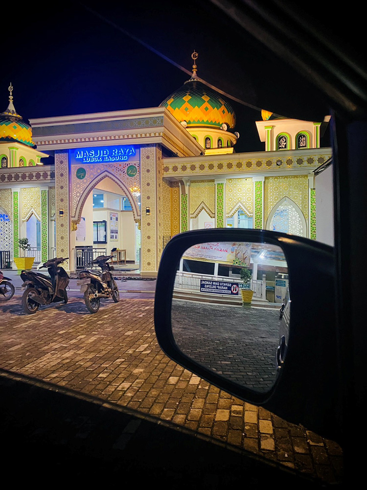 街灯のほかに光のない世界で、信者たちがぞろぞろとモスクの中へと吸い込まれていきます。
