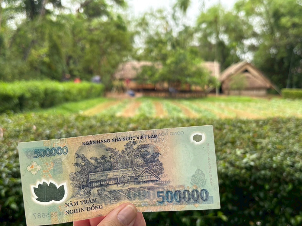 ベトナムの紙幣には、すべてホーチミン主席が載っていますが、最高額の50万ドン(日本円で約3,000円)札に印刷されているのが、ホーチミン主席の生家という事で、よくお札と記念撮影します。