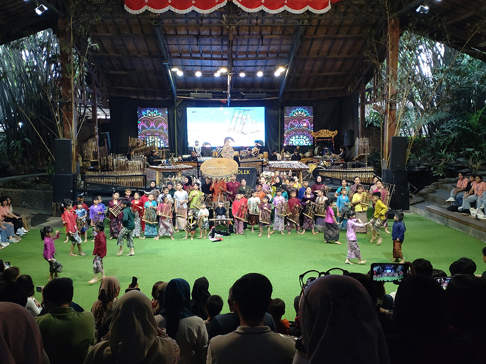 最後に紹介するのはアンクルン・ウジョです。ここではスンダ(西ジャワ州に多く住む民族)の伝統的な楽器である「アンクルン」の演奏を聴いたり、演奏したりすることができます。アンクルンだけでなく、インドネシアの各民族の踊りを鑑賞することができます。曜日ごとに演目が異なるので、何度も通ってしまいました!