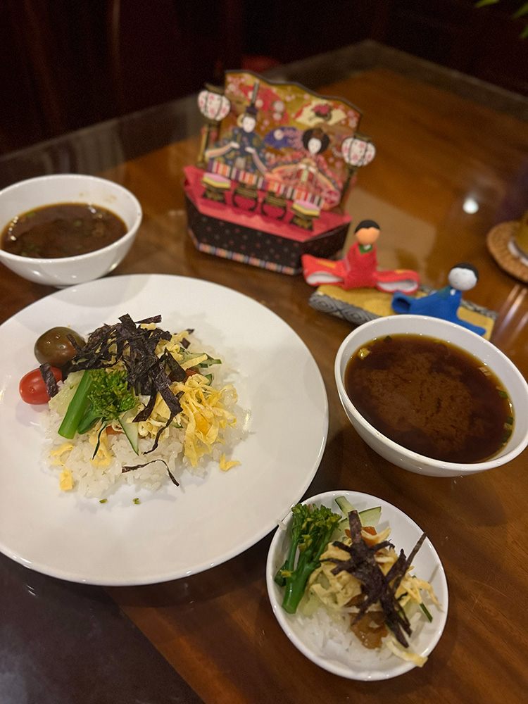 ひな祭り当日は、同期NP(日本語パートナーズ)と2人でちらし寿司を作り、ひな祭りパーティーをしました。