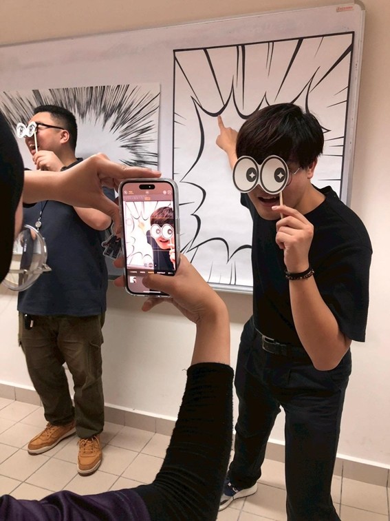活動の中で私たちが特に意識したのは、その場にいる誰もが楽しめる環境をつくることでした。「書道・茶道・浴衣」といったメイン活動の事前準備や段取りに加え、順番待ちの時間も有意義に過ごせるよう、「アニメ・マンガのエフェクト背景を使ったフォトブース」や「お正月遊びブース」を設け、生徒たちが自由に楽しめる工夫をしました。